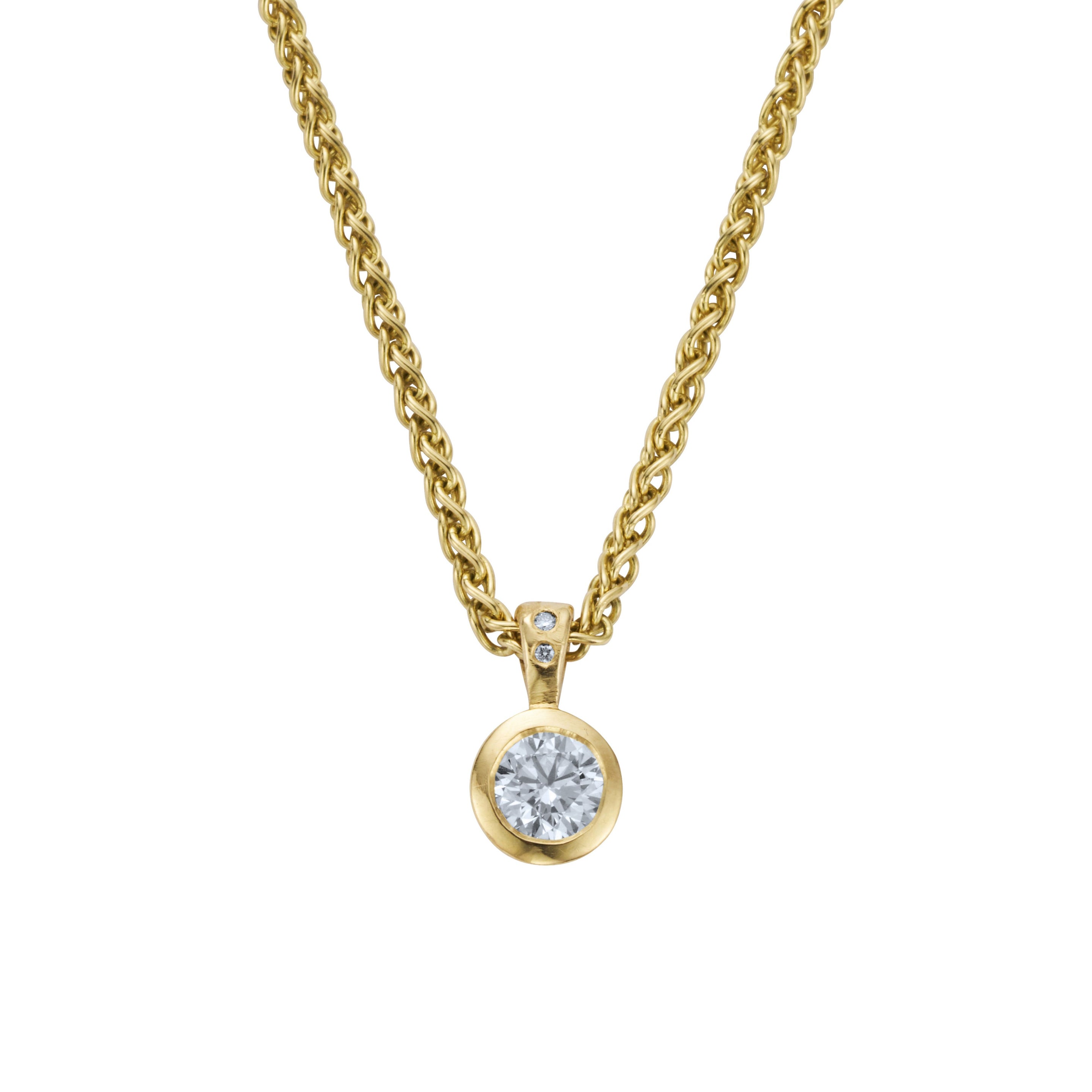 A 1.20ct round brilliant lab-grown diamond sits at the heart of the Ciana pendant, set in 9ct yellow gold. Suspended from a classic spiga chain, its design and sparkle create a piece that feels both modern and timeless.