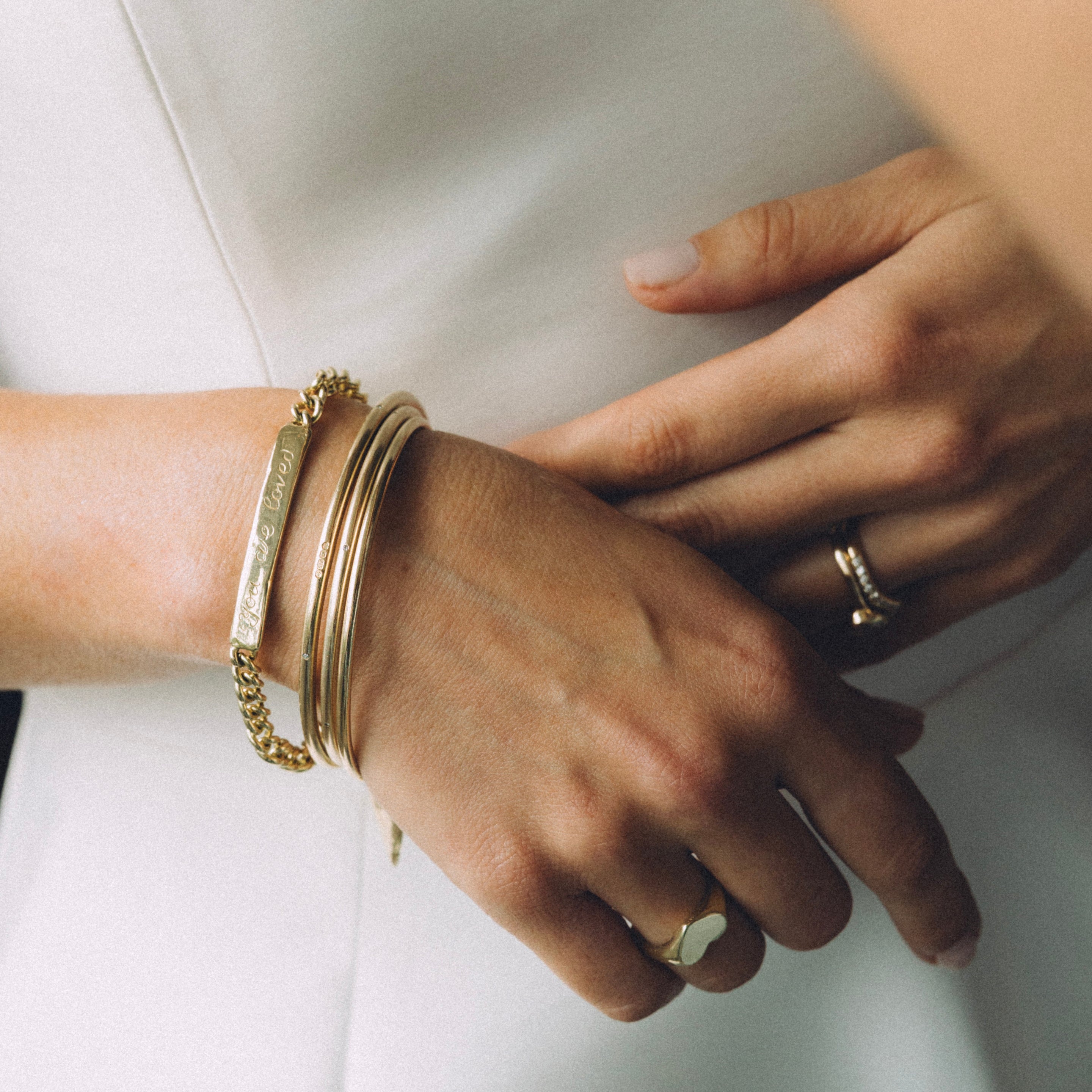Our precision laser engraver etches your chosen inscription directly into the metal. Choose from classic, classic italic, or script fonts to create a timeless finish. Each piece is made personal, turning special words into jewellery to treasure forever.