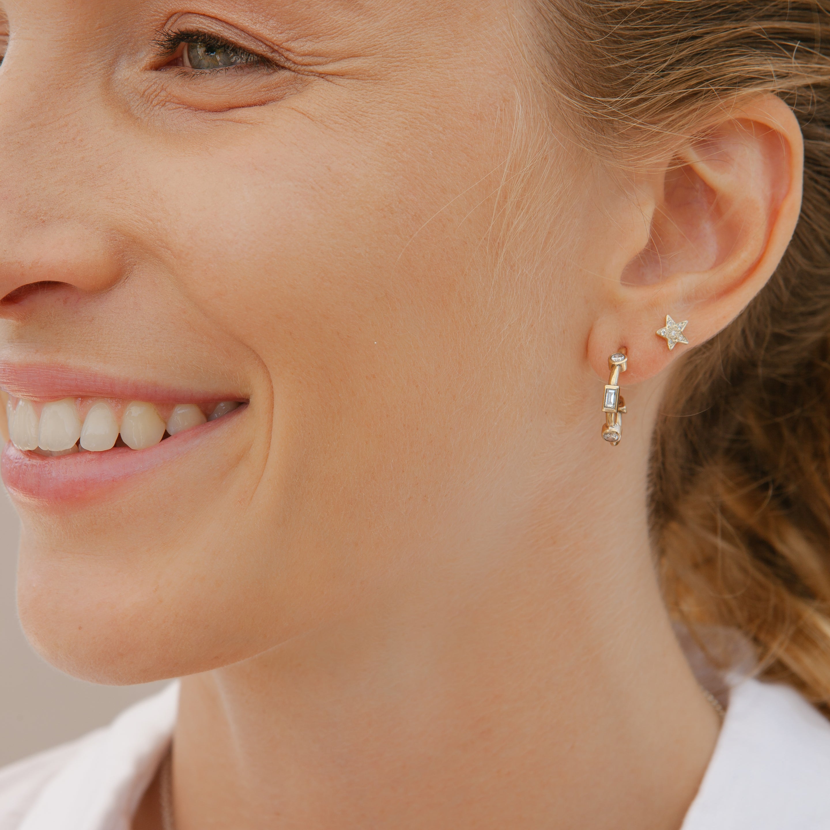 Celebrate the season with our Diamond Choker and Mini Cupid Hoop Gift Set. Handcrafted in recycled 9ct yellow gold, this elegant duo features baguette and round brilliant diamonds on the choker, paired with hoops set with three diamonds each. A meaningful gift, symbolising light, purity and timeless elegance.