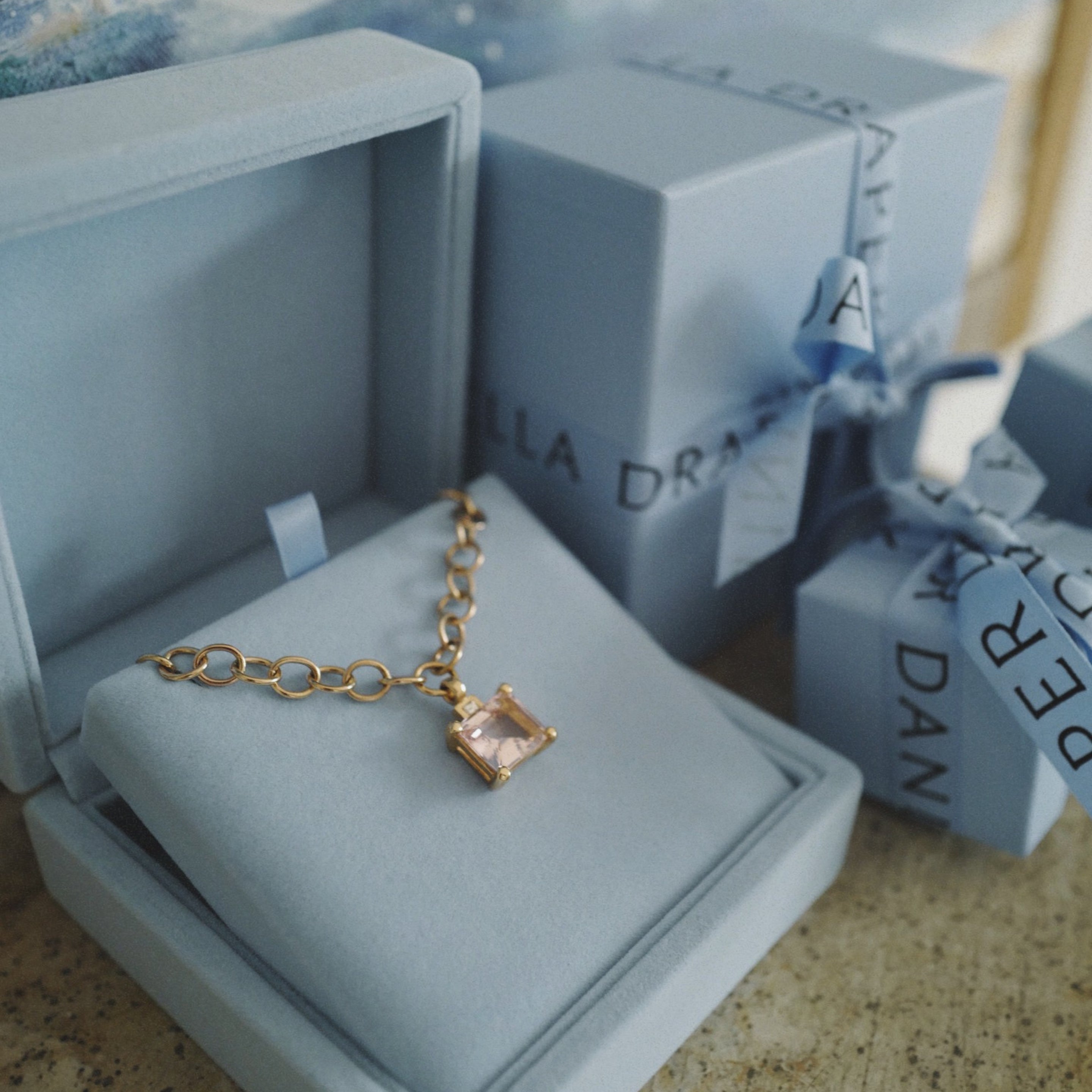 At Daniella Draper, every piece is beautifully presented with love. Choose from our eco-friendly packaging, individually gift-wrapped options, or elevate your purchase with our luxury gift wrapping. For One of a Kind designs, enjoy our complimentary bespoke velvet packaging, crafted to make your gift truly unforgettable.