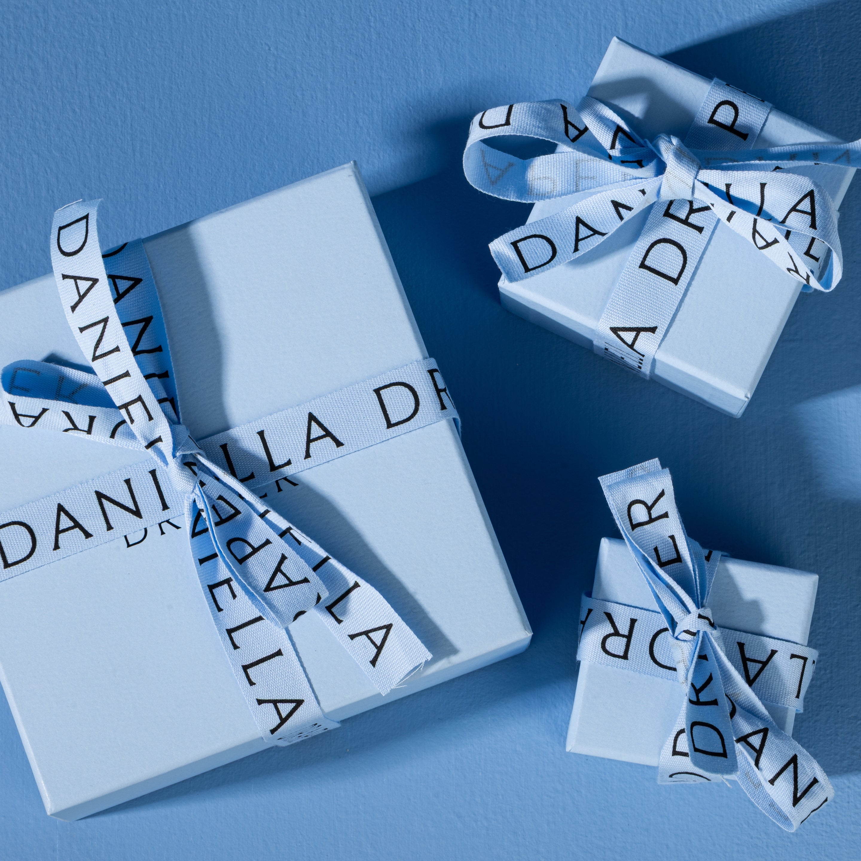 At Daniella Draper, every piece is beautifully presented with love. Choose from our eco-friendly packaging, individually gift-wrapped options, or elevate your purchase with our luxury gift wrapping. For One of a Kind designs, enjoy our complimentary bespoke velvet packaging, crafted to make your gift truly unforgettable.