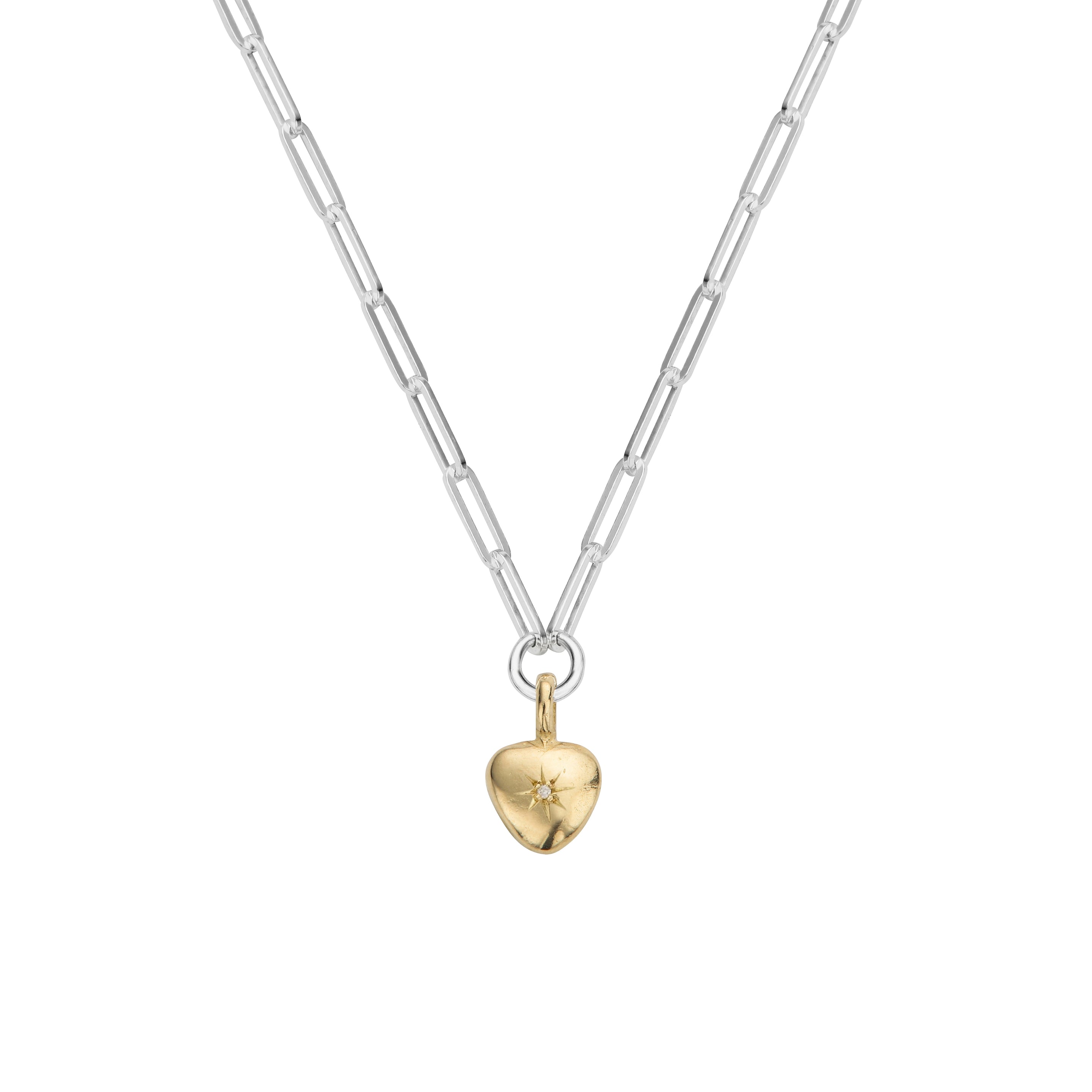The Grateful Heart Trace Chain Necklace is made using recycled solid sterling silver & 9ct yellow gold. The Trace Chain looks great worn alone or layered with other DD necklaces to create your own unique look!