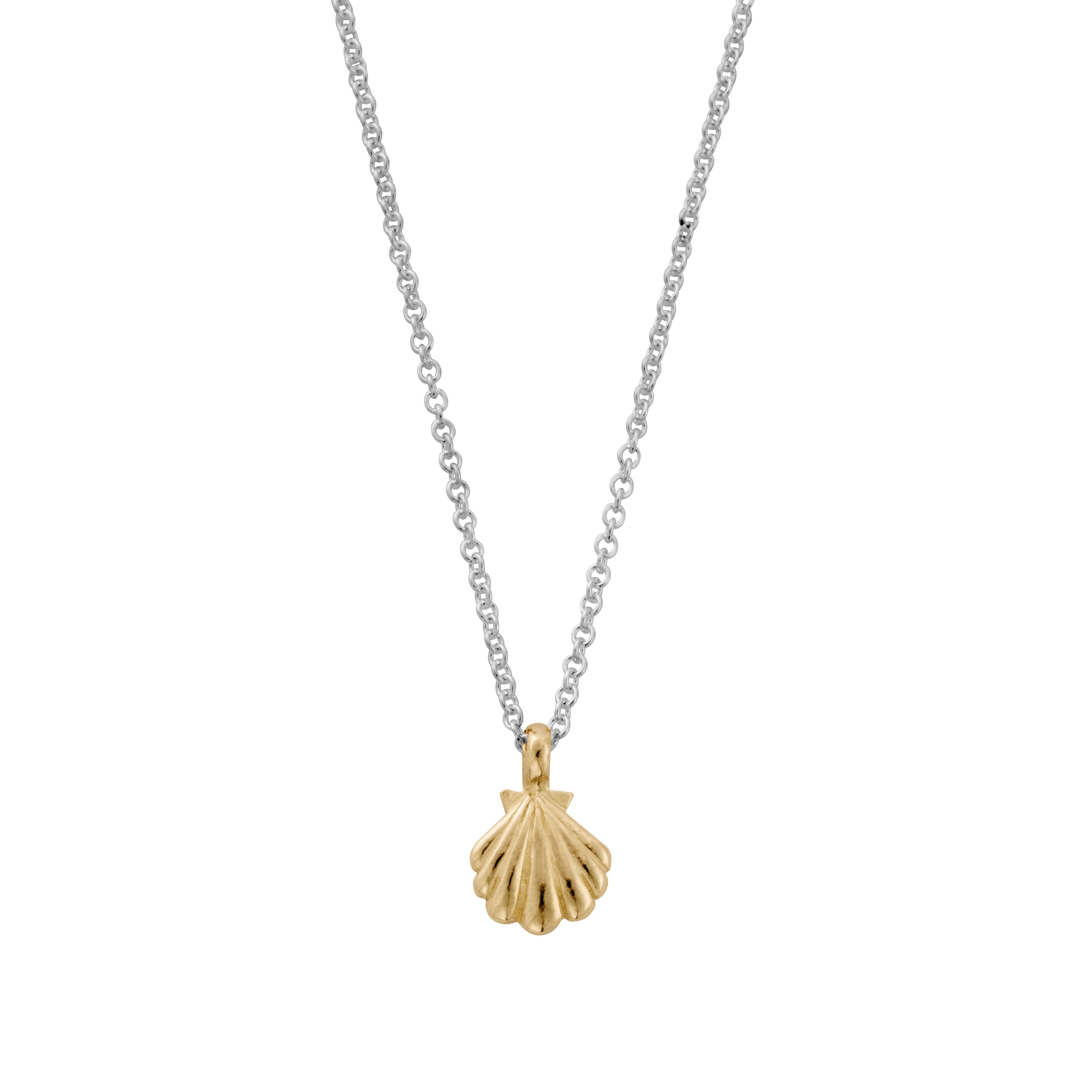 The Silver & Gold Scallop Shell Necklace is made using recycled sterling silver and 9ct yellow gold. Wear alone or layer with other DD necklaces to create your own unique look.