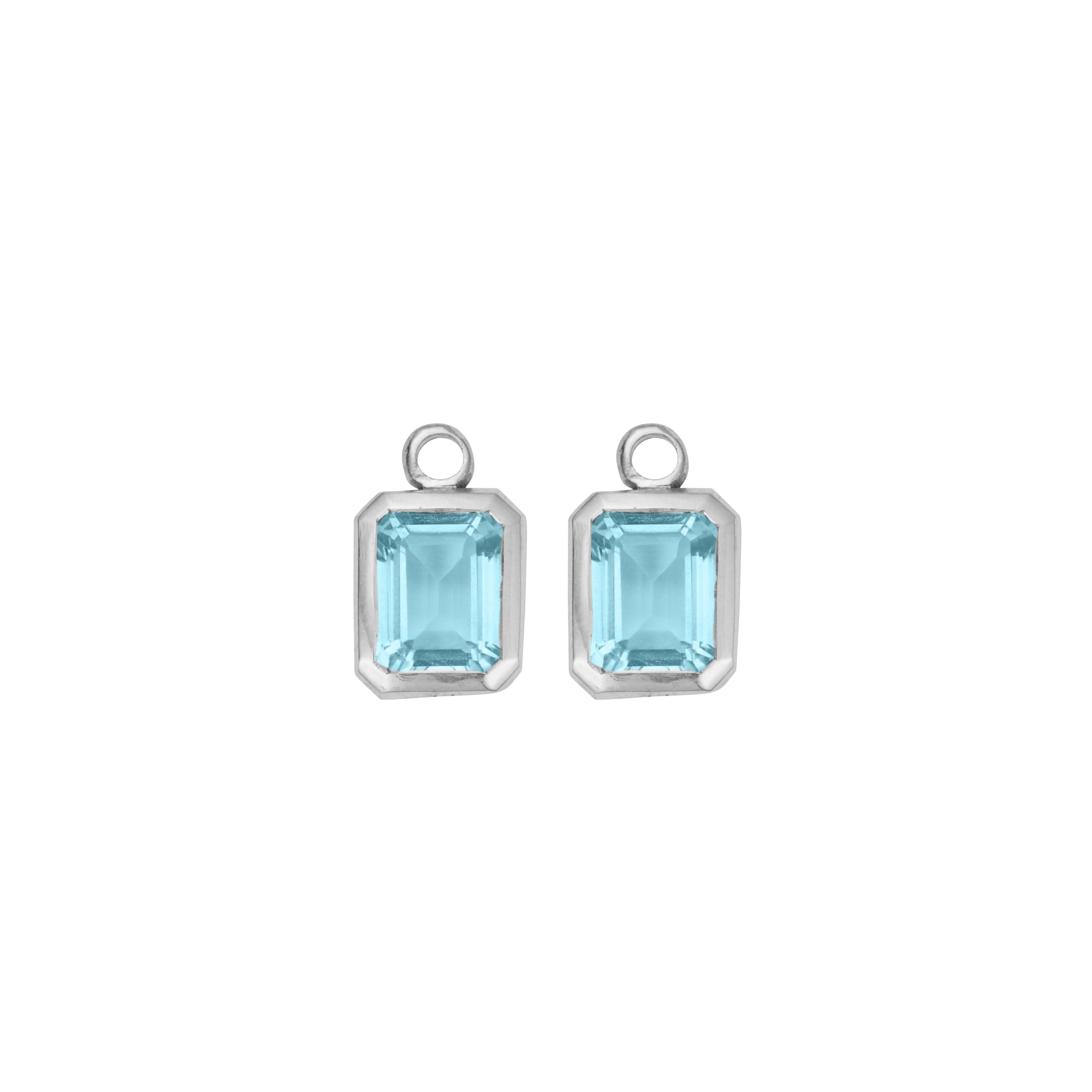 The Juno Earring Charms showcase ocean-blue topaz gemstones set in recycled sterling silver; the perfect pieces to hook onto your Cupid Hoops.