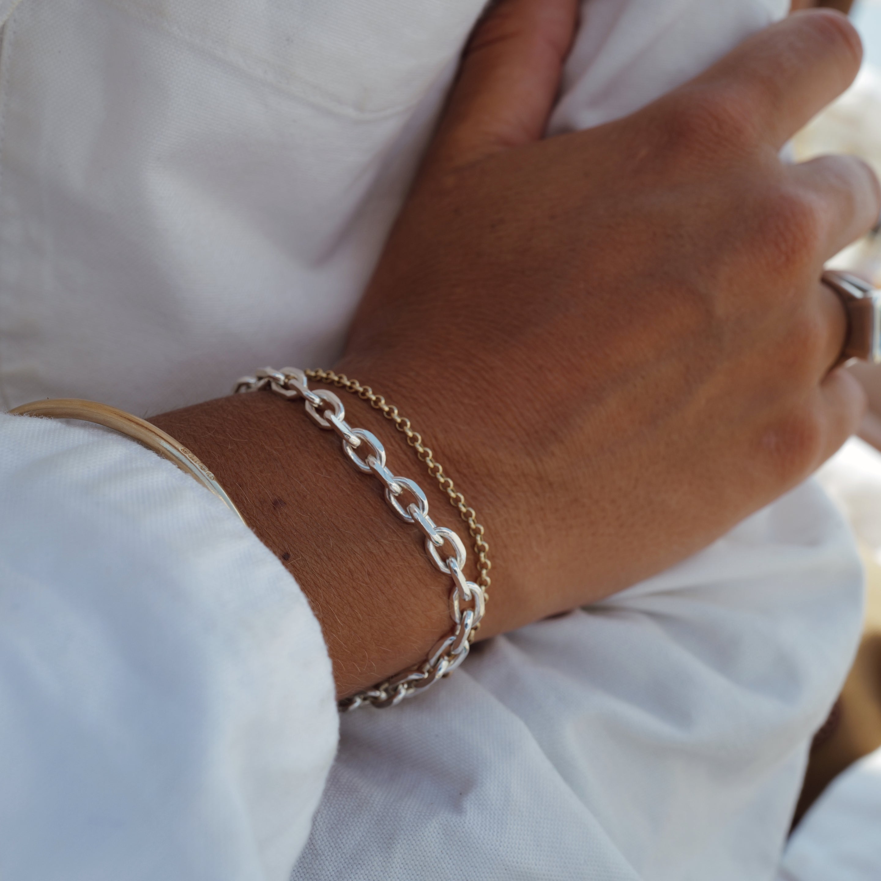 Handcrafted in England using recycled sterling silver, the Maxi Oxford Chain Bracelet is a versatile and timeless design. Perfect for stacking with other DD bracelets or to wear on its own for a more understated look, this unisex design is a striking his and hers piece.