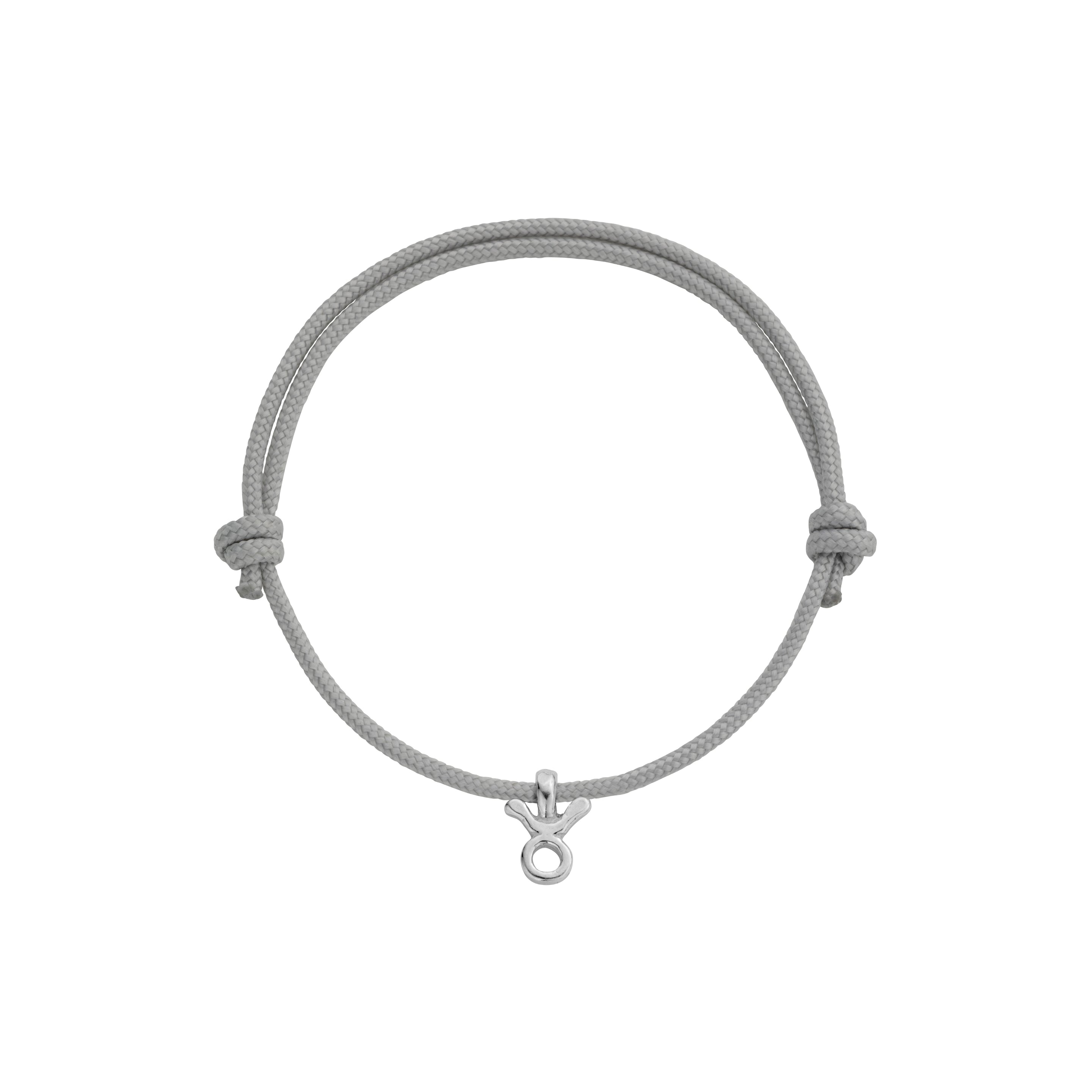 The Taurus Mini Horoscope Charm, made using recycled solid sterling silver, is threaded onto an adjustable sailing rope. One of our most popular & easy to wear pieces, this sailing rope comes in three colours: black, pink or grey.