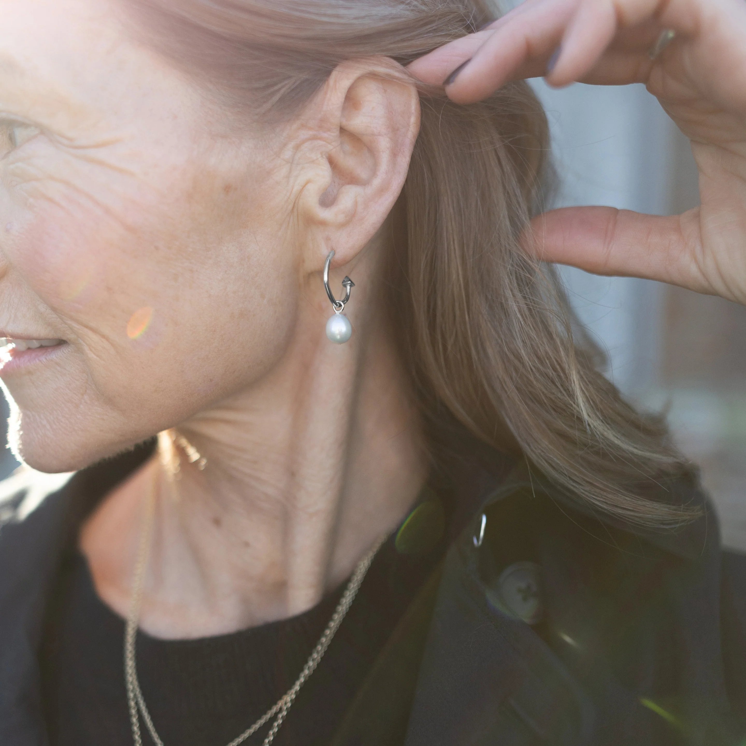Celebrate timeless elegance this Christmas with our Silver Teardrop Pearl Gift Set featuring our classic Mini Cupid Hoops adorned with Teardrop Pearl Charms and Silver Teardrop Pearl Necklace. Handcrafted in England from recycled sterling silver, this set combines the graceful simplicity of our signature design with the natural beauty of pearls, often called gems of the sea and symbolic of wisdom and experience.