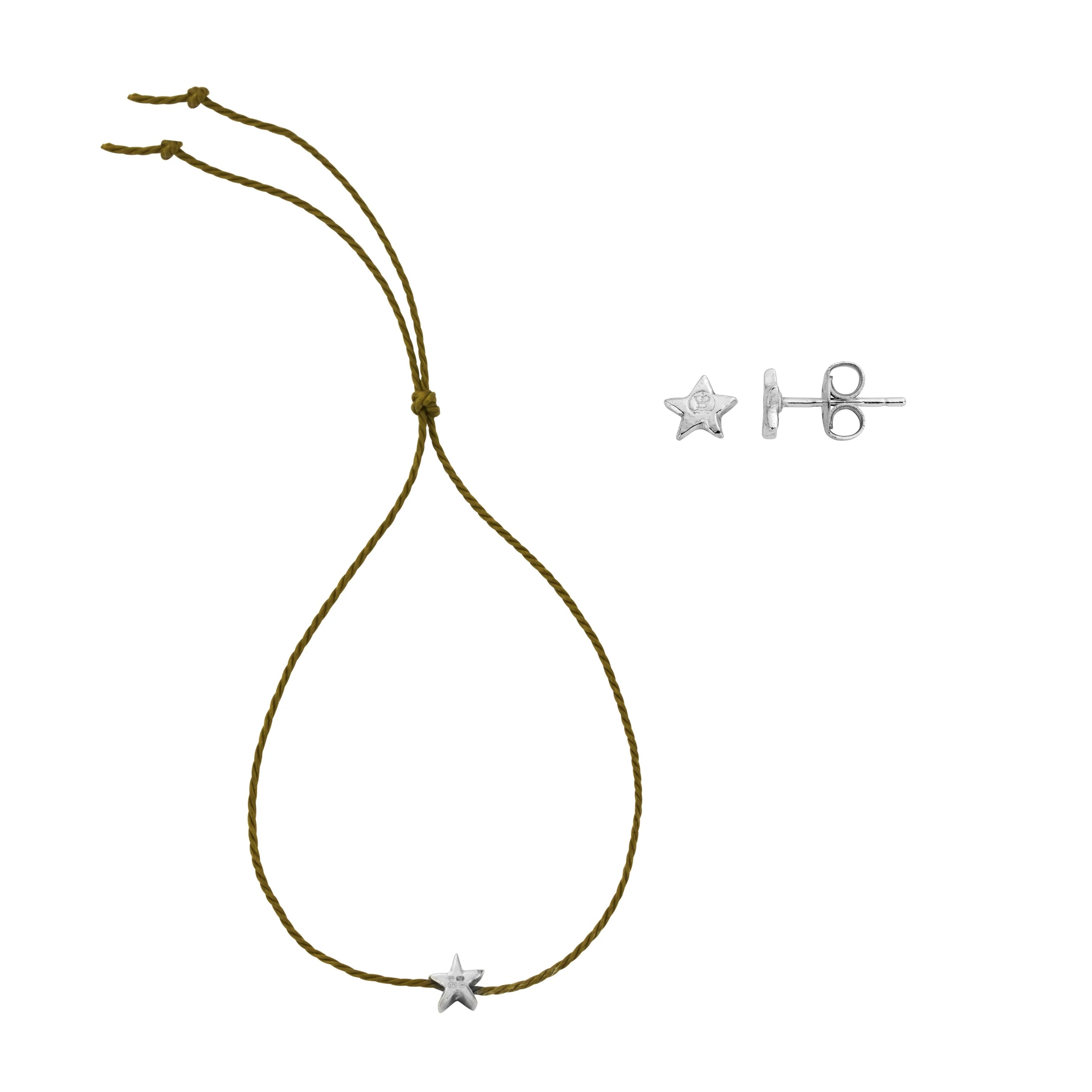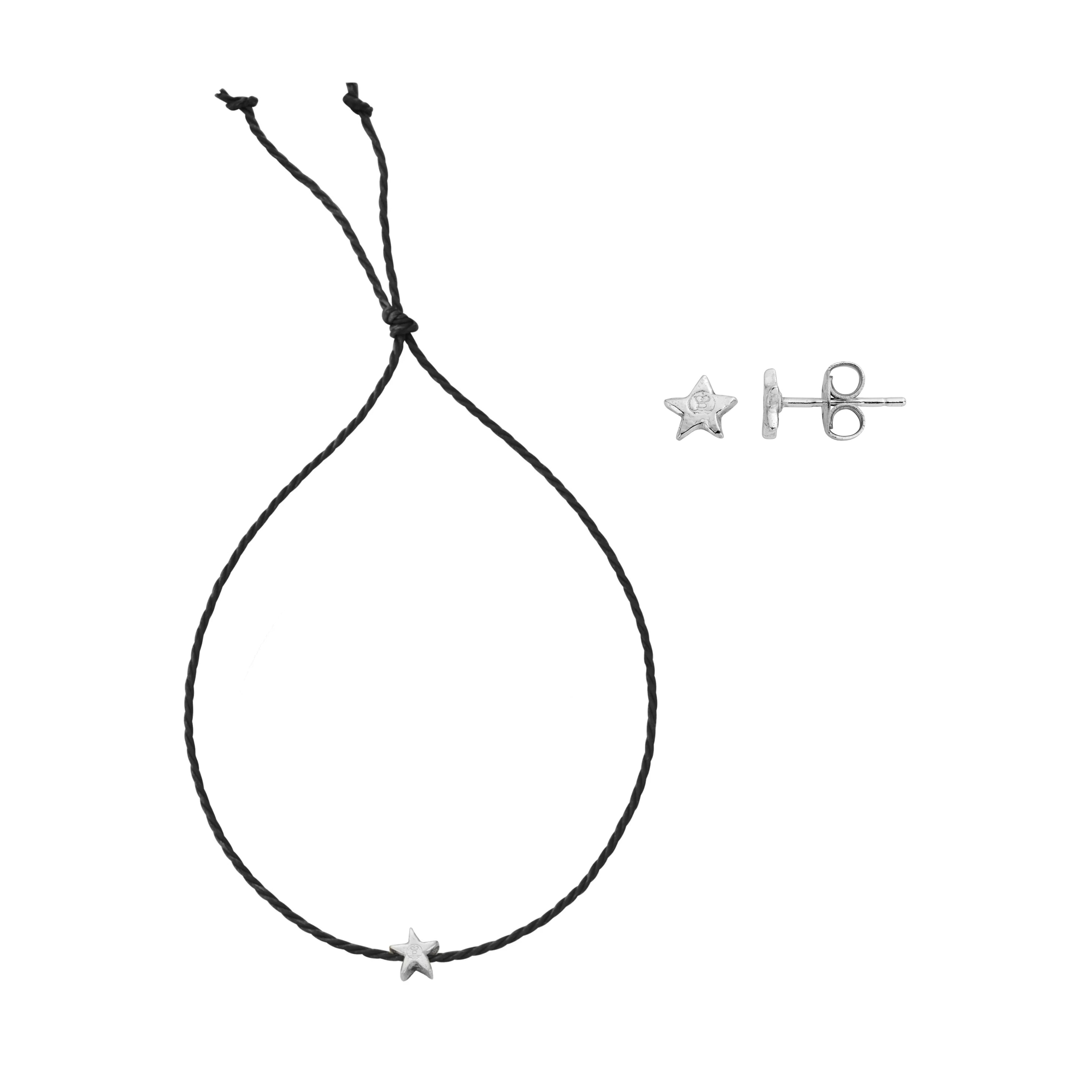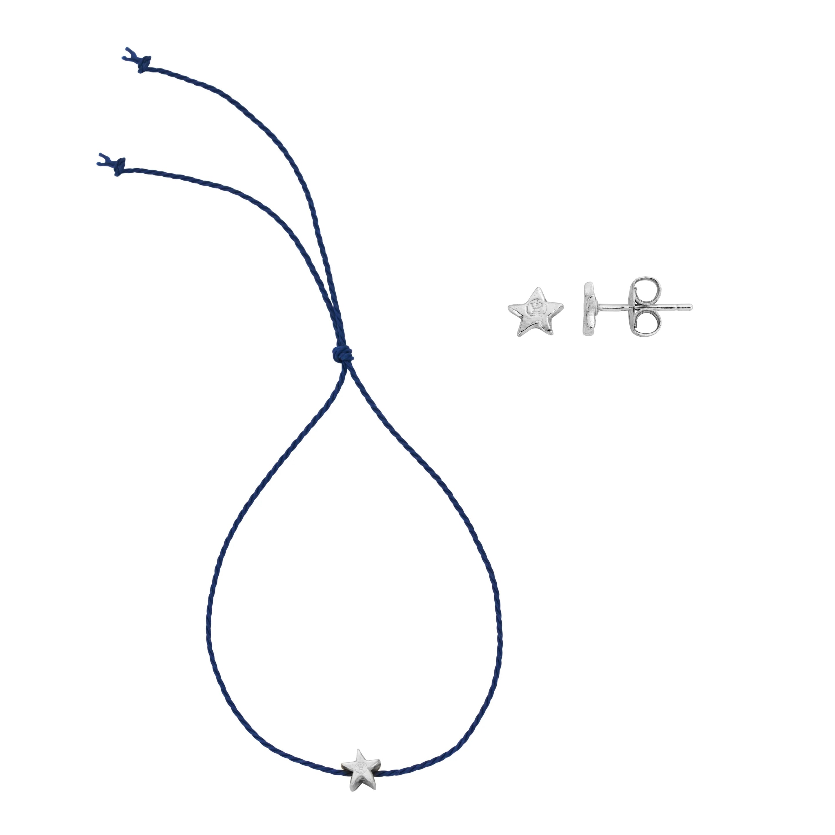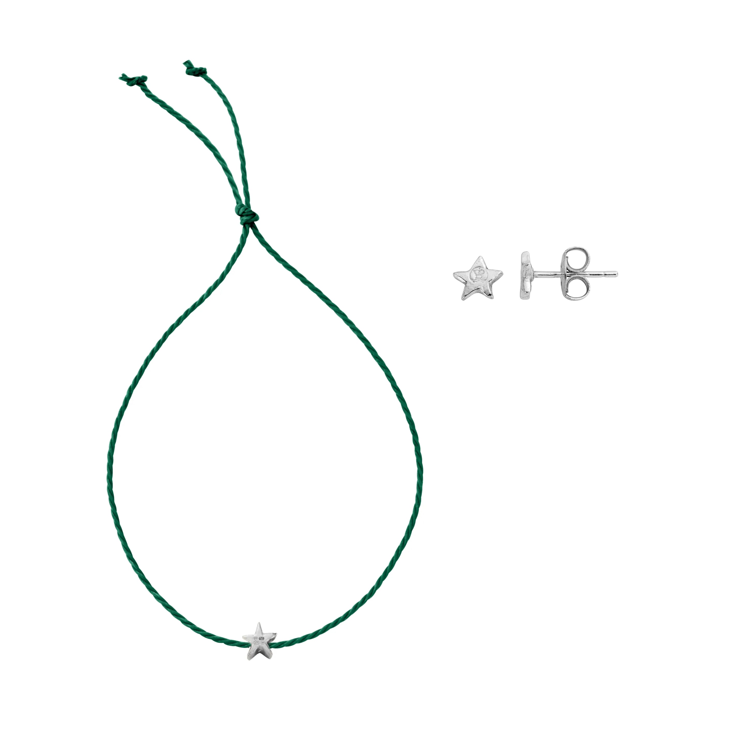Bring a touch of starlight to Christmas with our Tiny Star Gift Set, featuring the Cord Bracelet and Earrings. Handcrafted in England from recycled sterling silver, this playful set pairs a delicate star charm on your choice of colourful cords with matching star earrings, designed to shine every day.