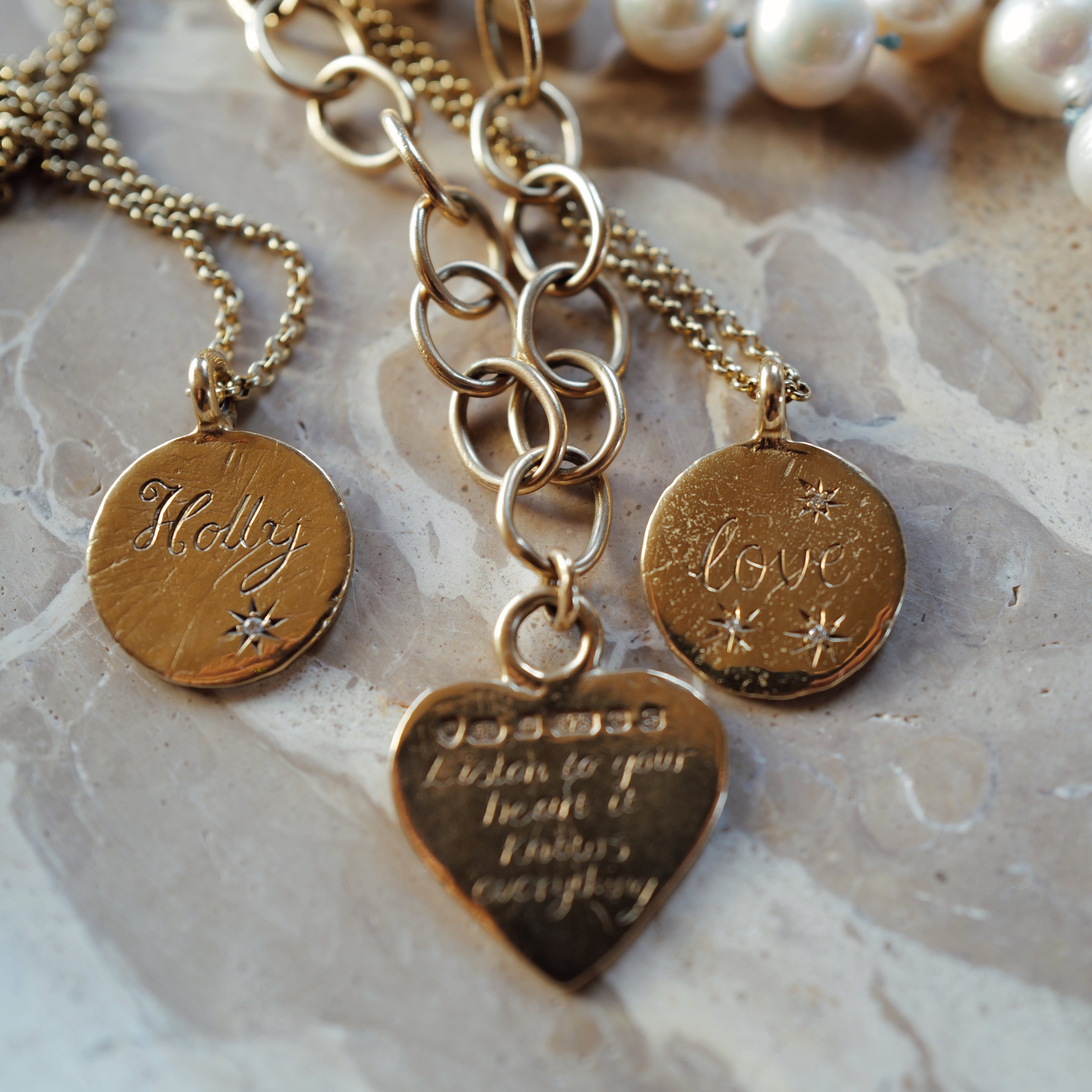 Hand engraving is a delicate process where we engrave the design directly into the surface of the metal, carving each word or letter with precision. This technique adds a timeless, personal touch to your jewellery.